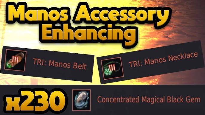 It can be enhanced with the same item but if enhancement fails both will be lost. I dream that Manos Ruby Necklaces receive the same treatment. Produced in Level 1 Manos Jeweler.